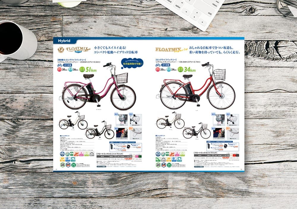 日本の自転車メーカーさんのA4サイズの冊子カタログです。商品が魅力的に見えるデザインにしました。